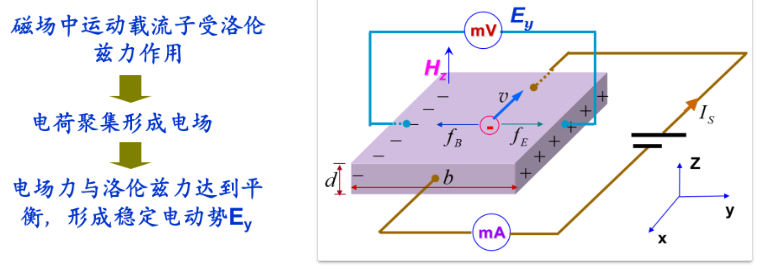 霍尔电压$U_H=R_H\frac{IB}{d}$,$R_H$是霍尔系数,为一本征参数