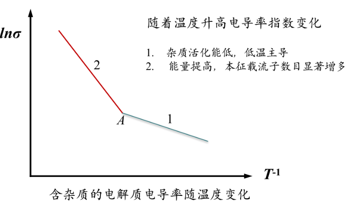 - 杂质电导,固定较弱的离子的运动,低温下显著