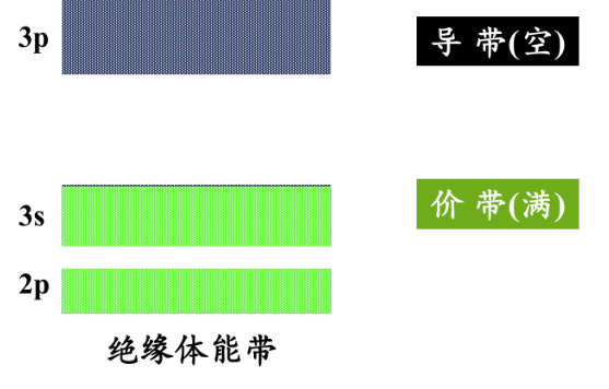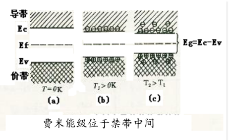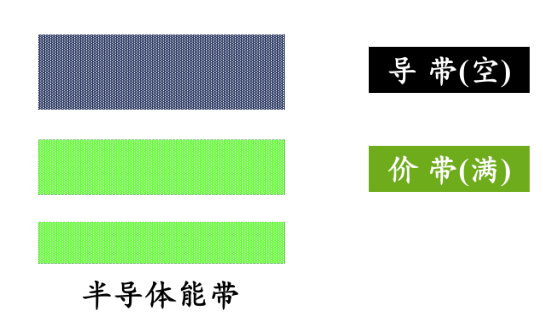 在外界作用下,价带电子获得能量,跃迁到导带,导带出现导电电子,价带留下空穴。