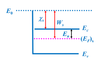 半导体的功函数$W_s=E_0-(E_F)_s=\chi_s+E_n$,$E_n$为导带底与费米能级的差,$\chi_s$为电子亲和能