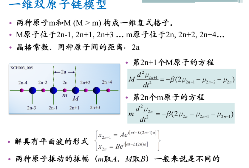 考虑一维双原子链的复格子,其振动方程的解有平面波的形式