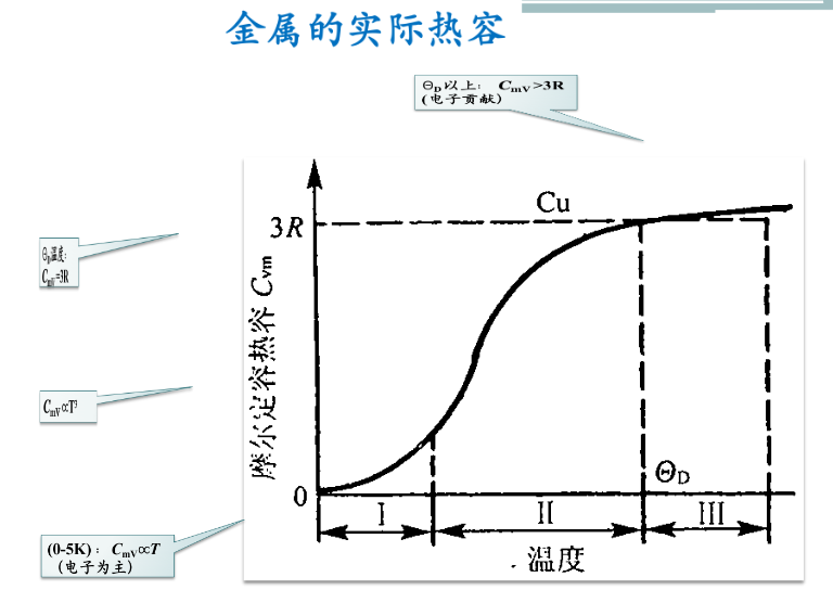 热容包括晶格热容和电子热容两部分。一般以前者占主导。